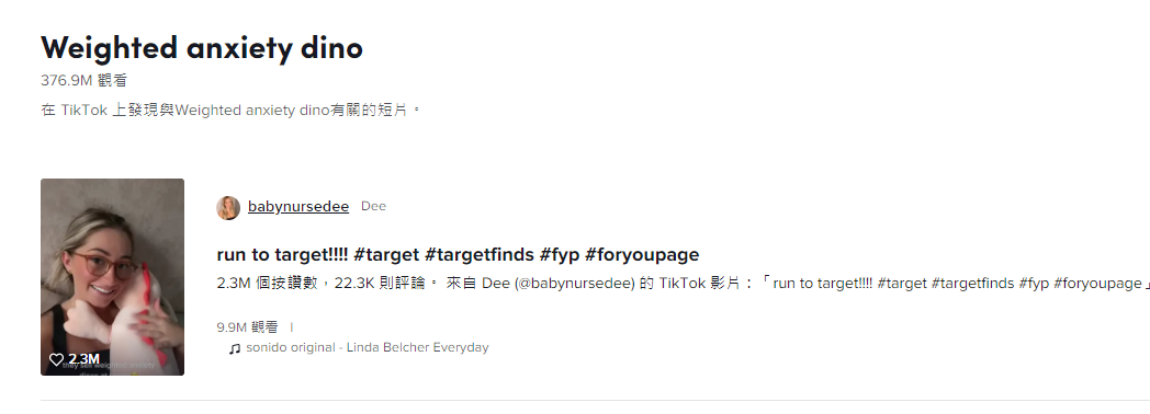可能 Target 公司也很懵逼,一款原本為兒童設計的恐龍毛絨玩具會如此出圈,晉升為 TikTok 用戶愛不釋手的一款成人加重款解壓玩具。