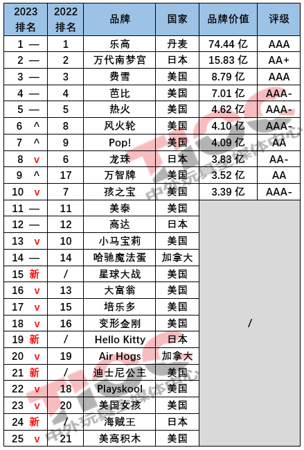 2023全球最有價(jià)值玩具品牌Top25!